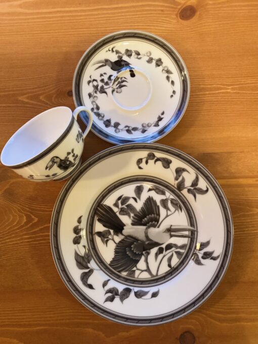エルメス(HERMES)と聞くと洋服やバック、小物のブランドとしてのイメージが浮かびますが、1984年ごろからテーブルウェアとしても躍進してきました。『エスタンプ ドゥ トゥカン』、Estampeとはフランス語で版画の意味、Toucansトゥカンはブラジルに棲息する野鳥トゥカンをモチーフにしたシリーズです。トリオで揃えると3羽の異なるトゥカンがお楽しみいただけます。上質でエレガントなデザインはテーブルを優雅に飾ります。